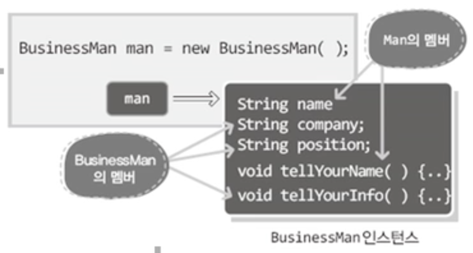 Man을 상속하는 BusnessMan 클래스의 인스턴스를 생성하게 되면,