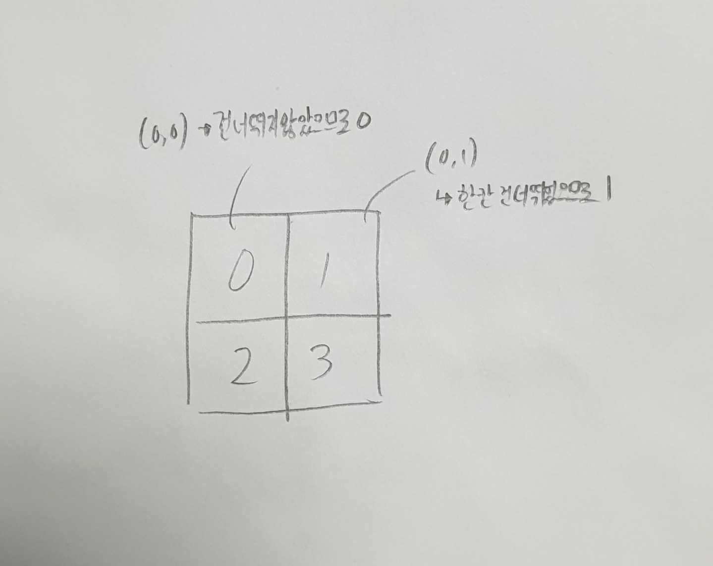 우선 좀 더 간단하게 생각해보면, 2차원배열의 각 값을 '건너뛴 횟수' 라고 볼 수 있다.