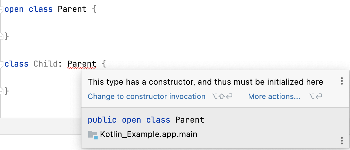 추가로 주의할 점이 있는데, 코틀린에서는 class가 기본적으로 final이기 때문에 상속을 할 수 없다.